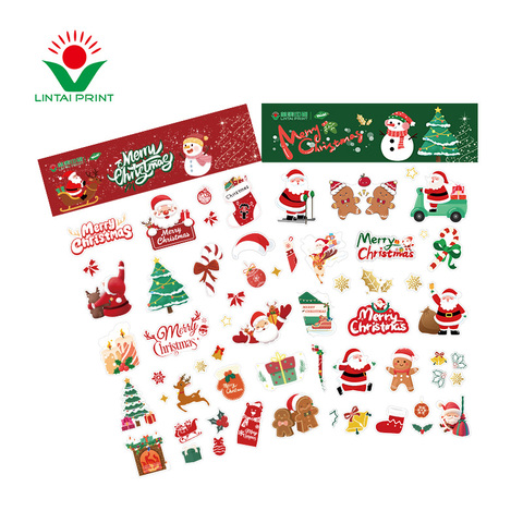 Özel noel özel ambalaj etiketleri küçük toplu özel yapıştırıcı ile çeşitli şekiller ve renkler
